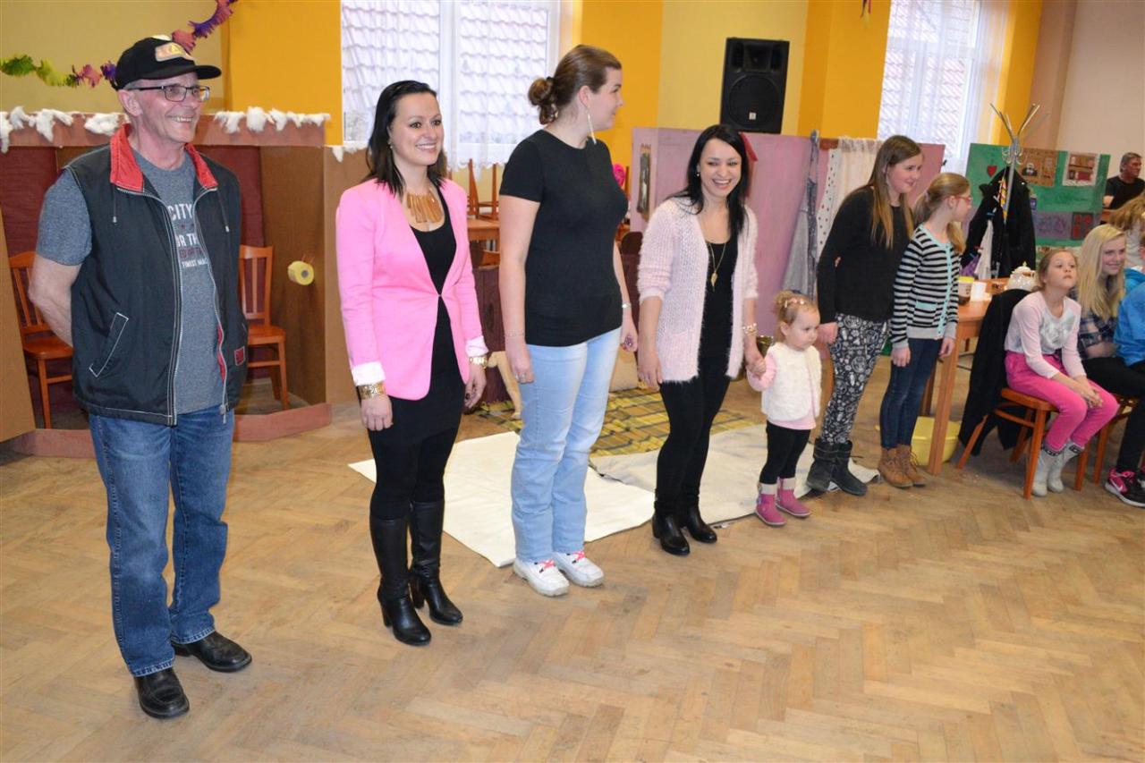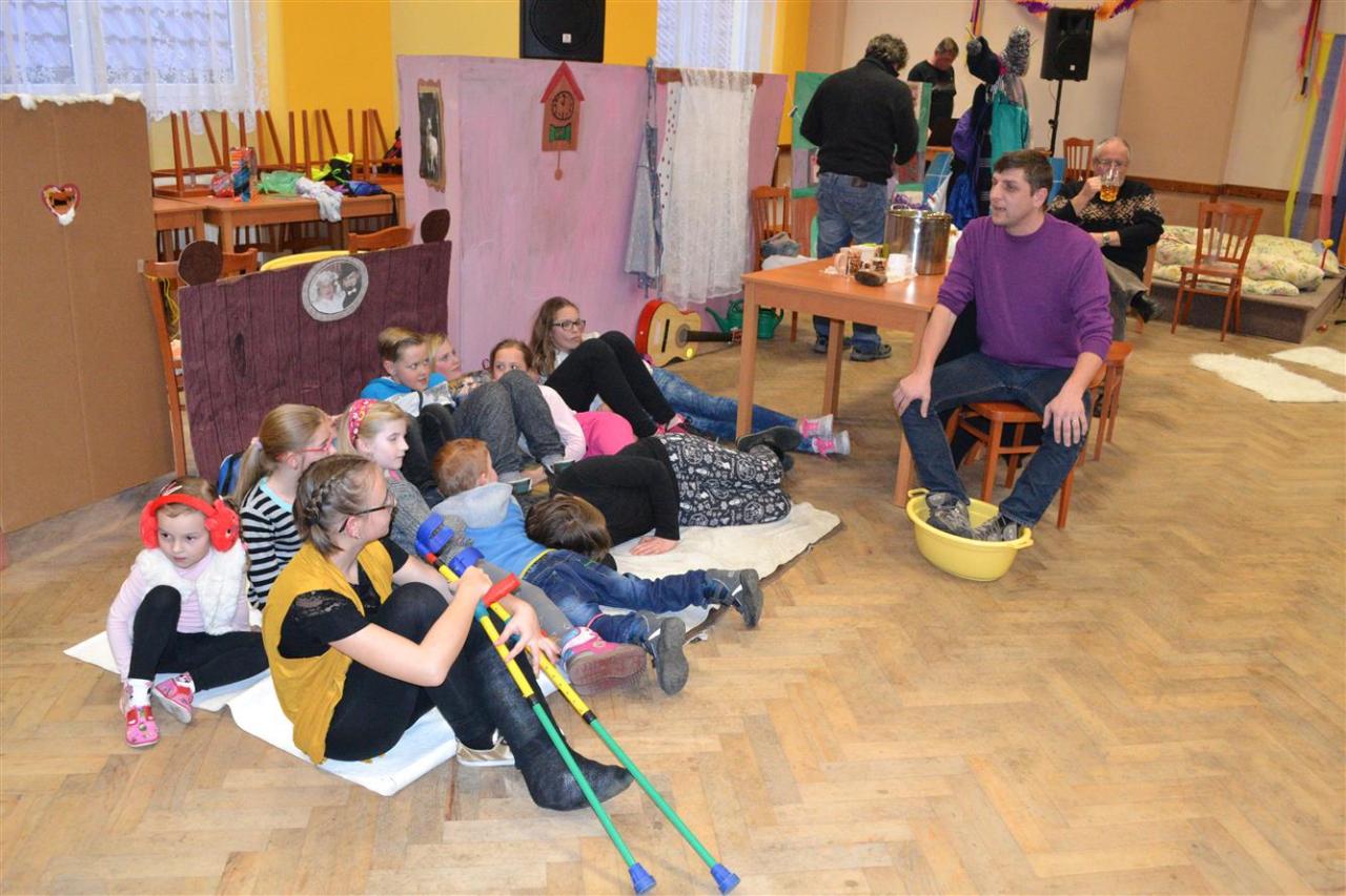 Domácí hvězdný soubor „JEN TAK…“ ji uvedl pod rozšířeným názvem „Děti na chalupě aneb s tebou mě baví svět“. A s velikým úspěchem, před zcela zaplněným sálem, v němž v té době byly ženy – oslavenkyně v menšině. Jen pro ně pak bylo určeno blahopřání a přípitek starosty obce, a také kytička a malé občerstvení.
