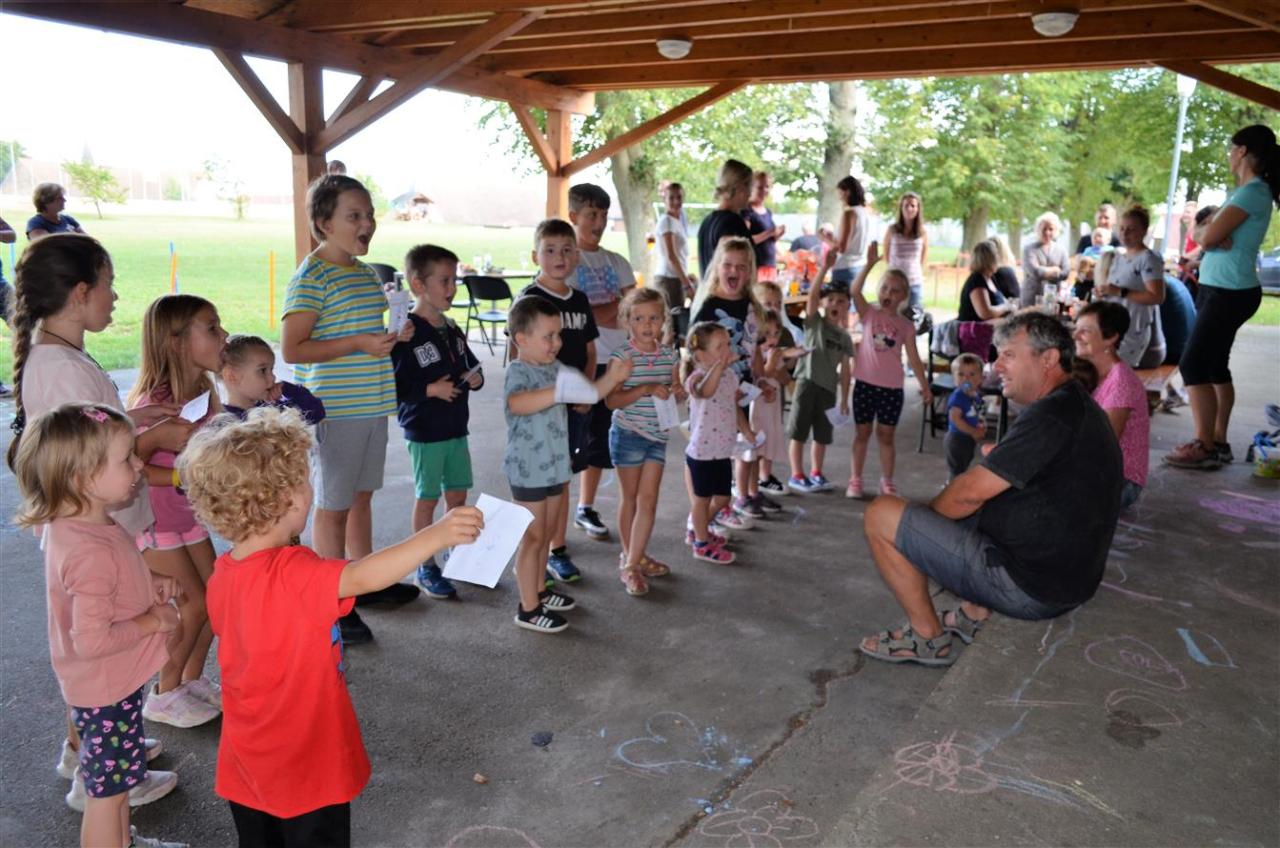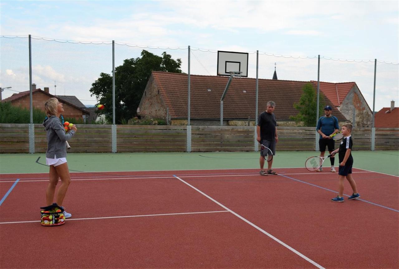 Sešlo se asi 35 dětí. Pro děti do šesti let byly připraveny soutěže na zručnost. Pro ty větší byl připraven tenisový workshop pod vedením trenérky Marcely Bacíkové. Po malém občerstvení, kdy každý dostal nanuka, si všichni ještě opekli špekáčky. Děkujeme Majce Churáčkové za výborné koblihy, Zdeně Jandové za buchtičku, spolku Řípecké ženy z.s. za organizaci a obsluze Řípecké hospody za občerstvení.