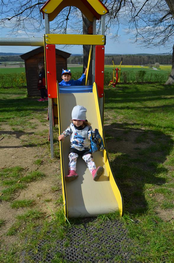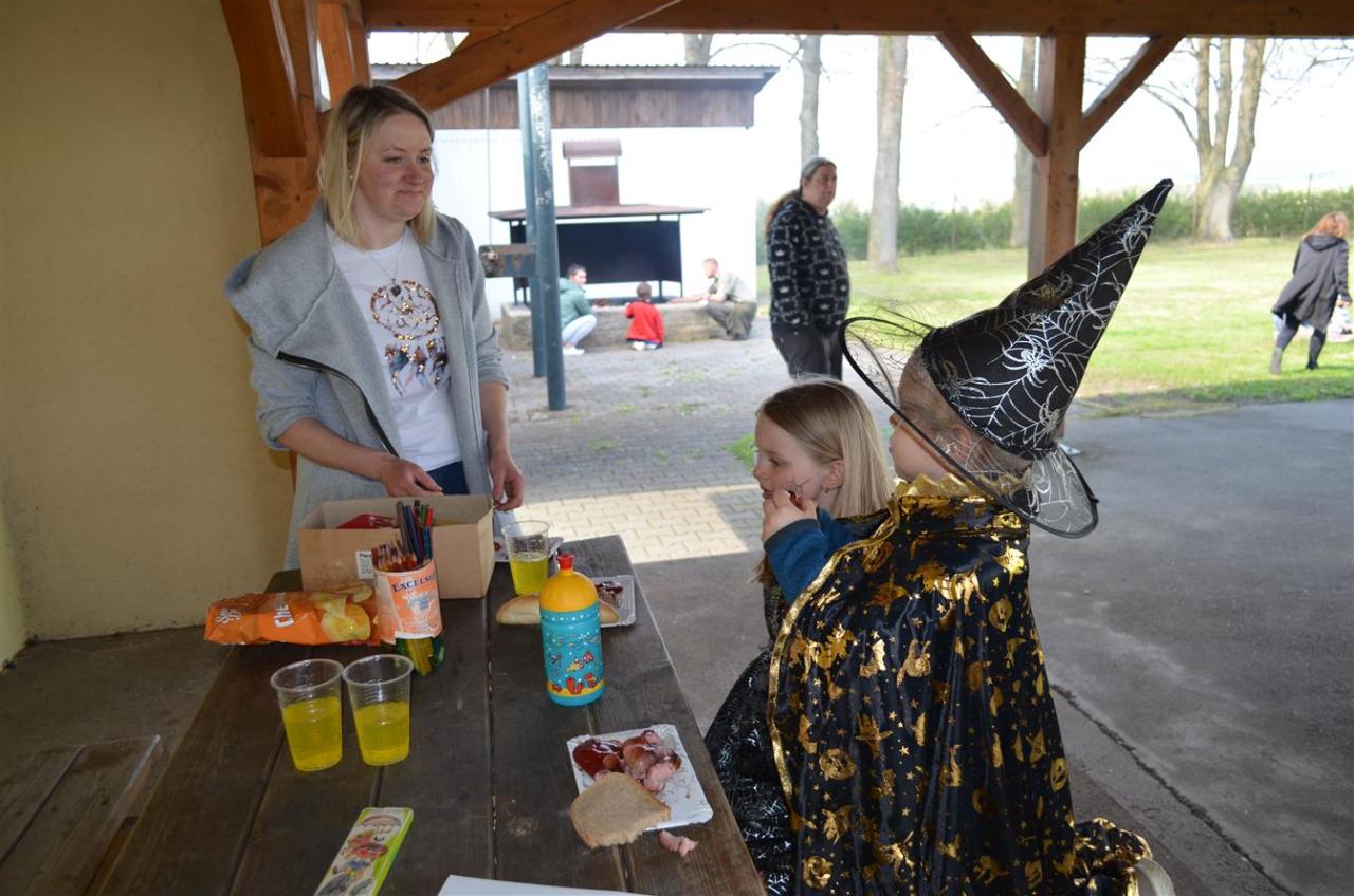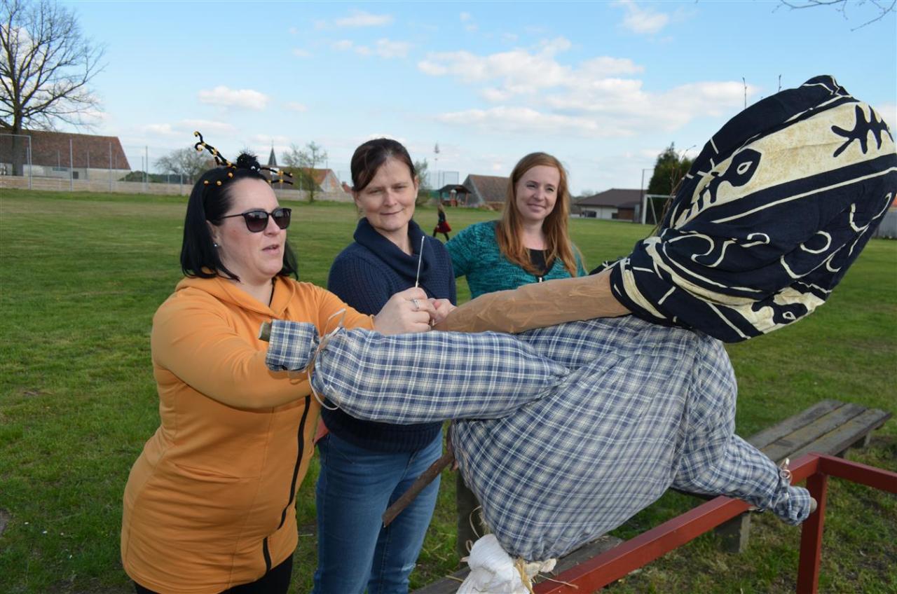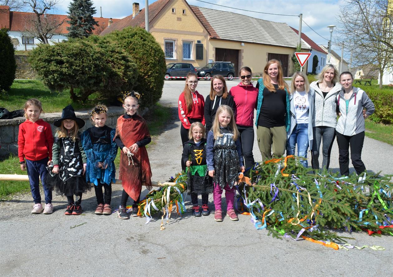 Čarodějnický rej se pak pro tento rok přesunul na hřiště, kde si mohly dětičky za pomoci rodičů vyrobit velkou čarodějnici, vymalovat a vyrobit čarodějnici malou a opéct si špekáček. Poté se průvodem všichni přesunuli k Hliněnkám, kde byl zapálen čarodějnický oheň.