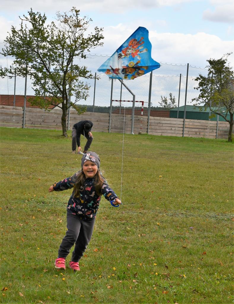 V neděli 29. září se od 14 hodin na našem hřišti sešlo bezmála 30 dětí, které si chtěly užít podzimní větrný a slunečný den. Každý si přinesl svého dračího kamaráda. Všem se nakonec podařilo draky zkrotit a nechat je vzlétnout pomalu až do oblak. Podmínky k tomu měli přímo skvělé. Po přistání všech draků si drobotina mohla vychutnat, stejně jako minulý rok, párek v rohlíku a sladké občerstvení, za které děkujeme maminkám.